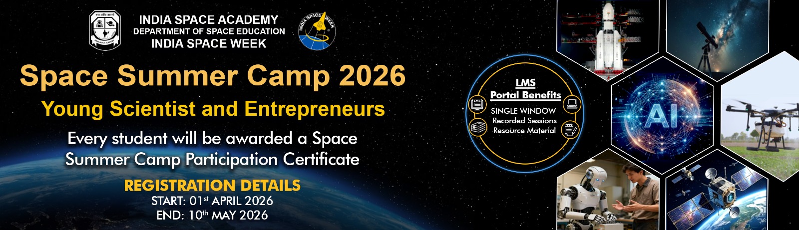 India Space Academy, established by India Space Week, is meant to impart quality space education primarily to the Indian student and teacher. It is the first Space Academy in India that established an online and offline space educational portal specialized in India and provides education, testing, and certification with trainees from more than 1500+ universities, colleges, schools, and educational institutions from all India.