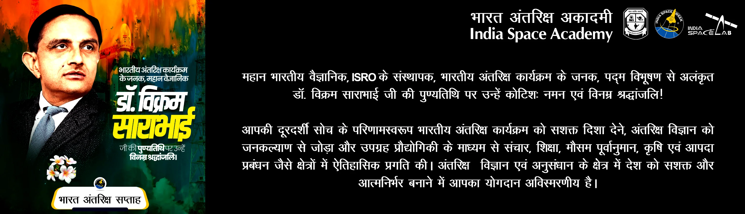 India Space Academy, established by India Space Week, is meant to impart quality space education primarily to the Indian student and teacher. It is the first Space Academy in India that established an online and offline space educational portal specialized in India and provides education, testing, and certification with trainees from more than 1500+ universities, colleges, schools, and educational institutions from all India.
